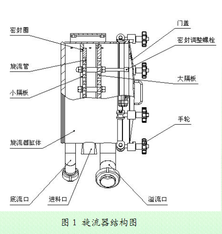 多級旋流站其主要目的是去除可溶與不可溶的蛋白、細纖維、糖份末凈化淀粉乳。是濃縮、洗滌、精制淀粉的關鍵設備。 設備主體全采用衛生級鏡面不銹鋼制作,確保物料不受侵蝕,設備表面經特殊工藝外理,耐油耐臟;旋流管由尼龍和高強度纖維制成,高能、有效;多級旋流站集濃縮、回收、洗滌和細渣分離等多種功能于一體,簡潔合理,美觀大方,產品質量穩定,深受大中型淀粉企業的歡迎,是豪森公司與******xj****技術合作生產的優質產品。二、結構與原理(附圖) 一級旋流站由旋流器總成和淀粉泵構成,將若干級旋流站科學地編結到一起,用以共同完成濃縮,回收和洗滌等精制工作,這樣的若干級旋流站為多級旋流站。 旋流器總成由旋流器缸體,門蓋,密封調整螺栓,大隔板,小隔板,手輪,頂流口(溢流口),進料口,底流口,Ο型密封圈,旋流管(十幾支到上百支)等組成,缸體內由隔板分離成進料,溢流和底流三個腔室,并由O型密封圈密閉(見圖1)