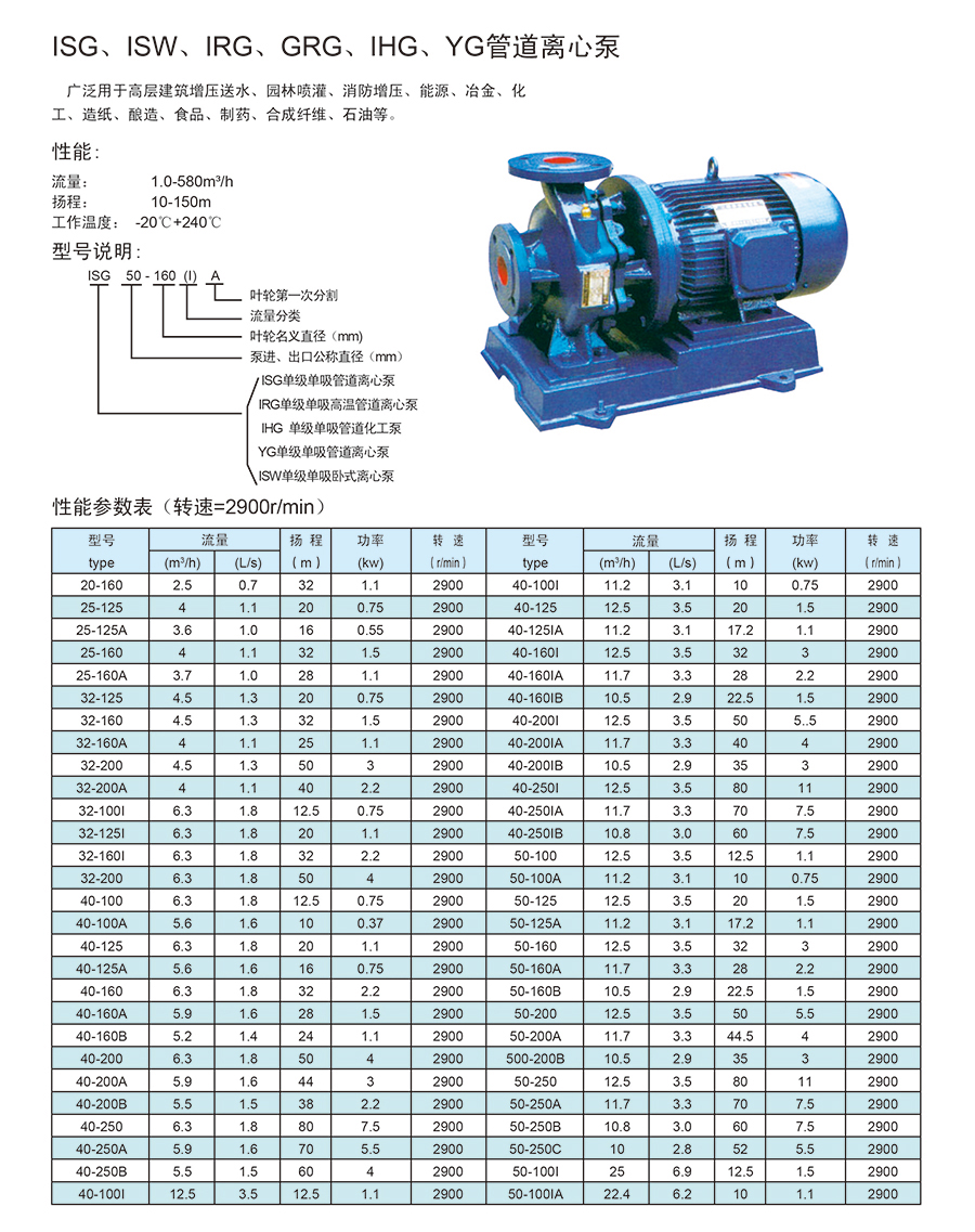 ISG、ISW、IRG、GRG、IHG、YG管道離心泵