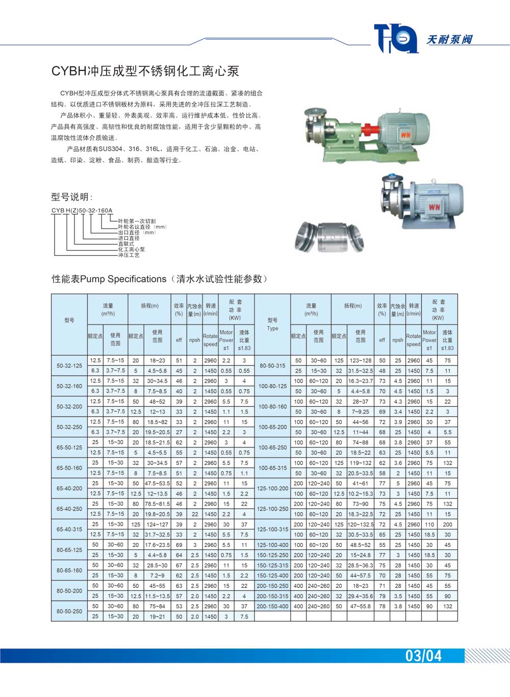 CYBH沖壓成型不銹鋼化工離心泵—天耐泵閥機(jī)械